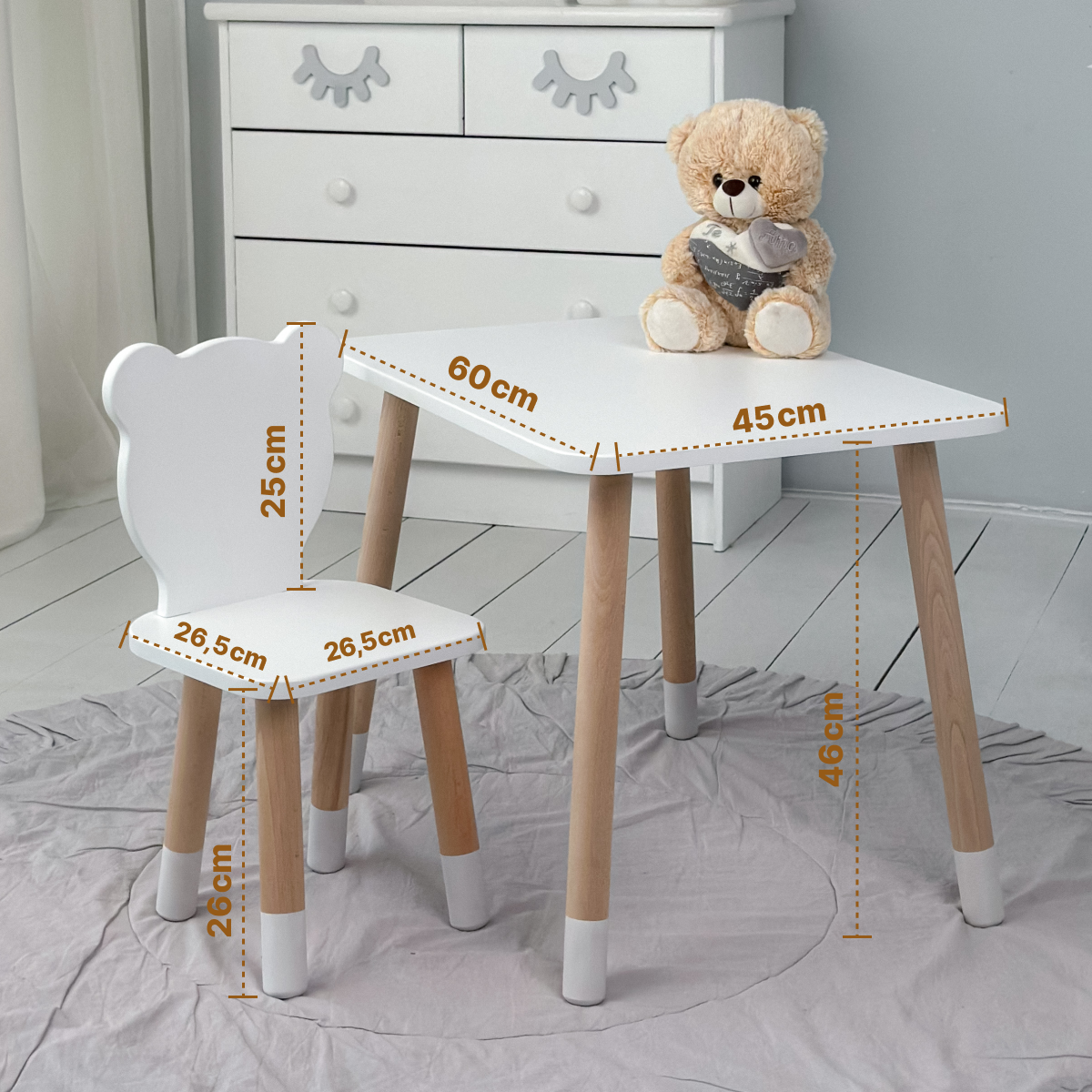 Ви можете зібрати повноцінний комплект – столик зі стільчиком в єдиному стилі. Такий набір стане зручним і практичним рішенням для дитячої кімнати, забезпечуючи малюкові комфортне місце для занять та ігор.
