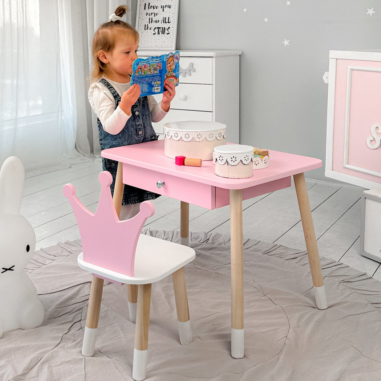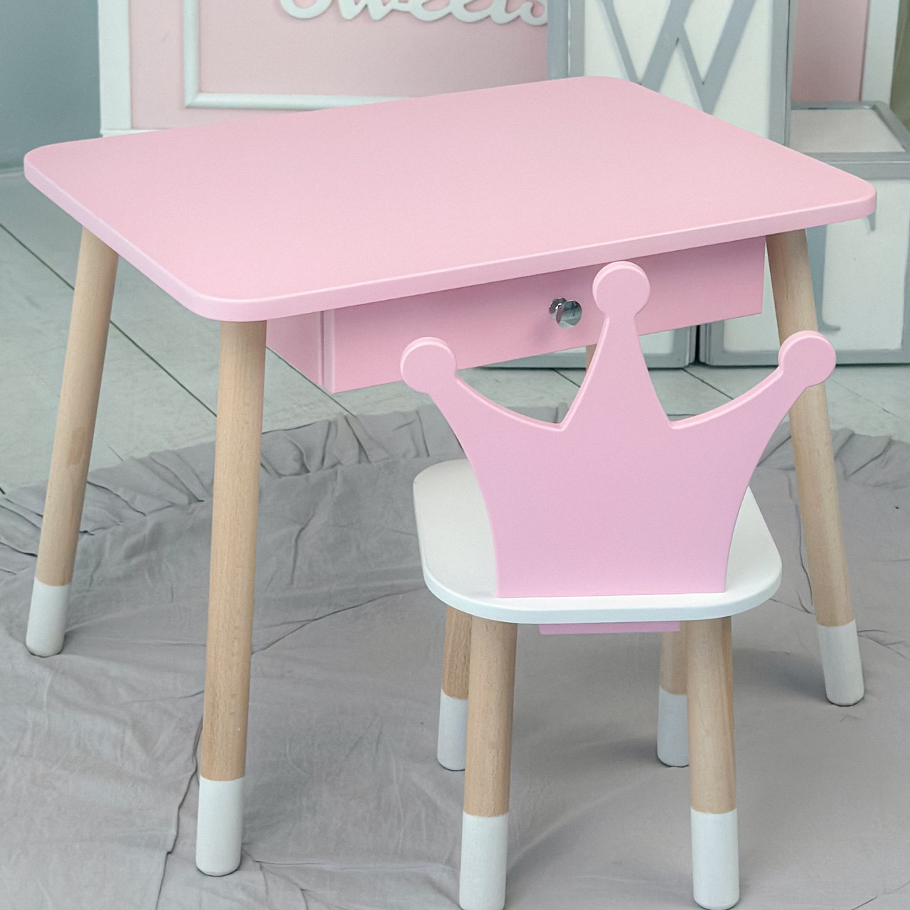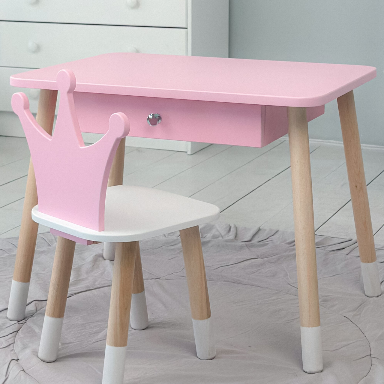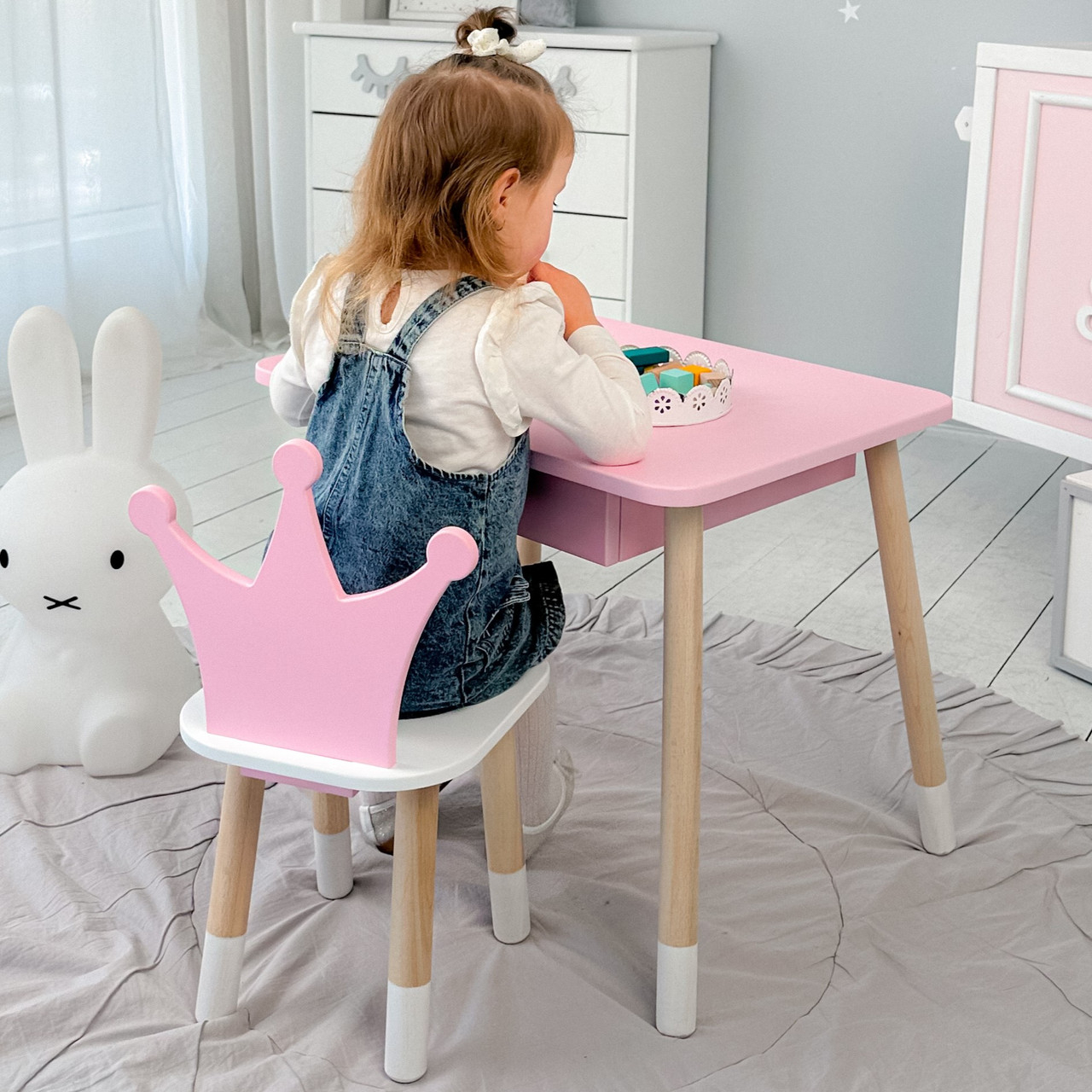 Дитячий столик і стільчик корона рожевий. Столик із шухлядою для олівців і розмальовок