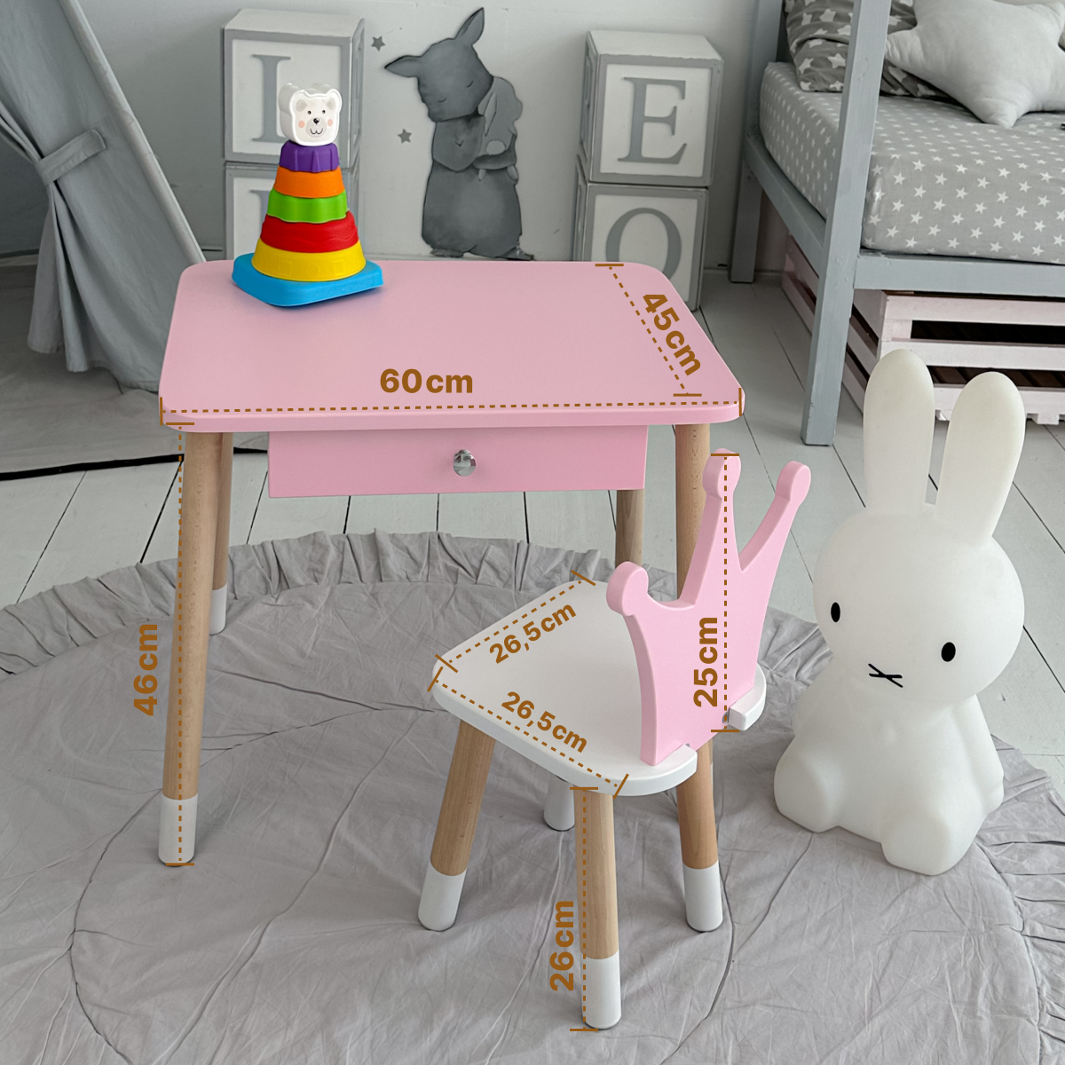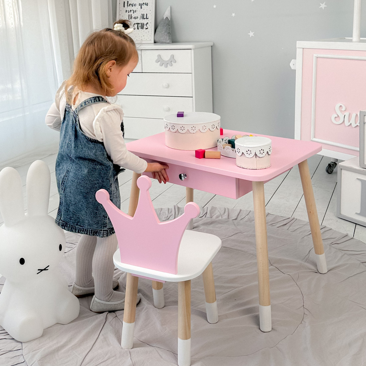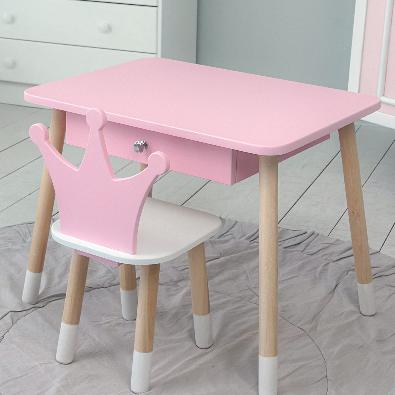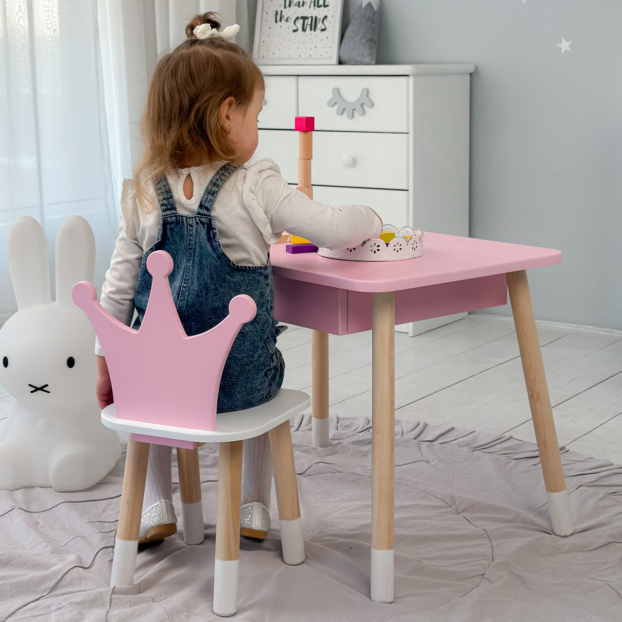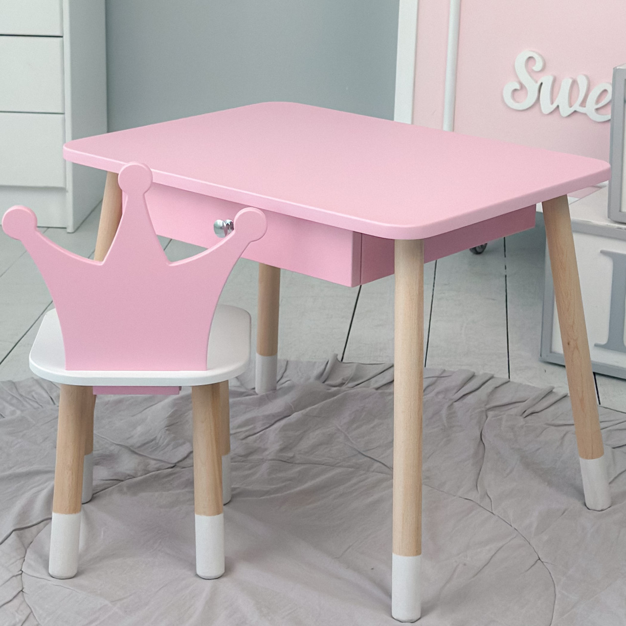 Дитячий столик і стільчик корона рожевий. Столик із шухлядою для олівців і розмальовок