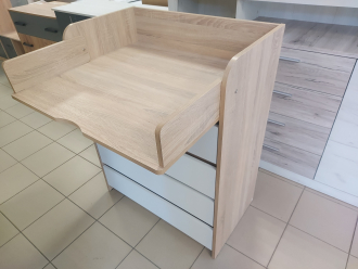 Пеленальний столик, прикріплений до комода — один з найбільш вдалих способів заощадити простір. Всі речі під рукою, при цьому можна покласти дитину, переодягти його або ж зробити інші необхідні процедури.