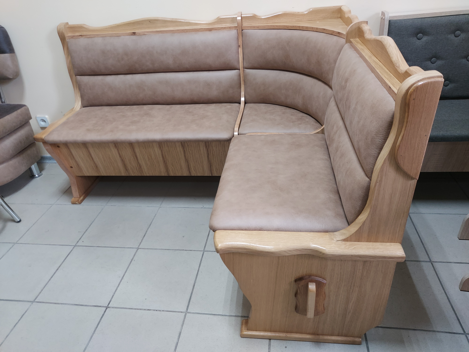Куточок може прикрасити як міську квартиру, так і заміський будинок, де він багато виглядатиме не тільки на кухні, але і де-небудь в саду на відкритій літній веранді. Меблі виготовлена з натурального дерева та відповідає всім європейським стандартам, тому прослужить максимально довгий час та збережеться в ідеальному стані.