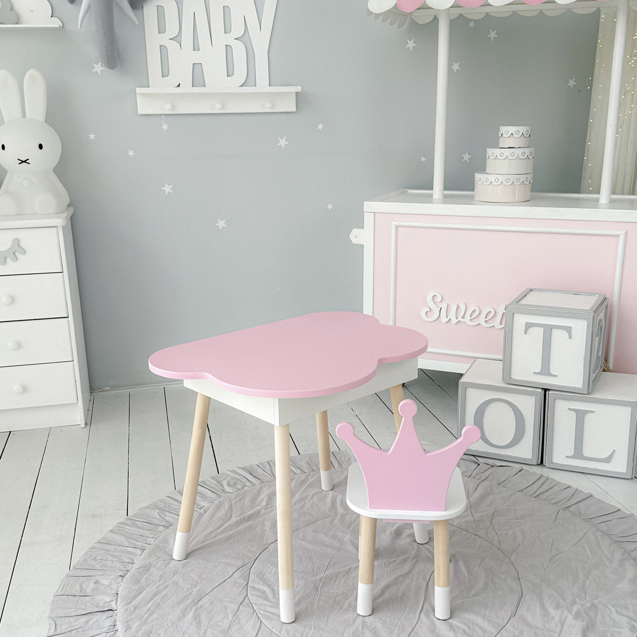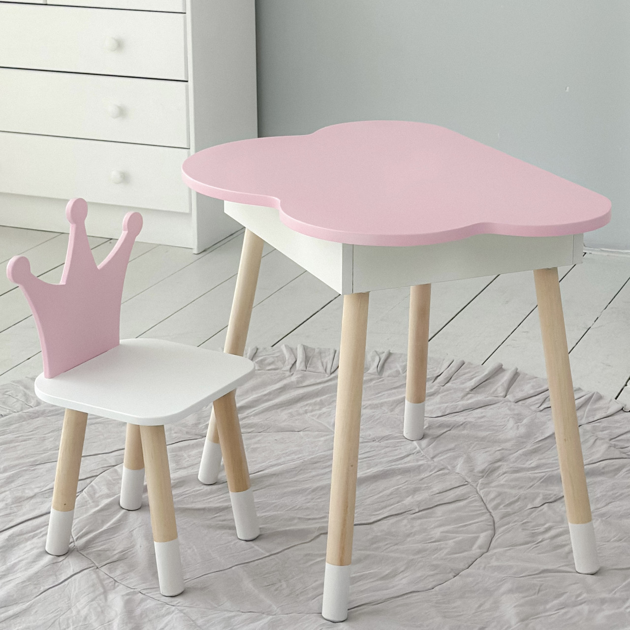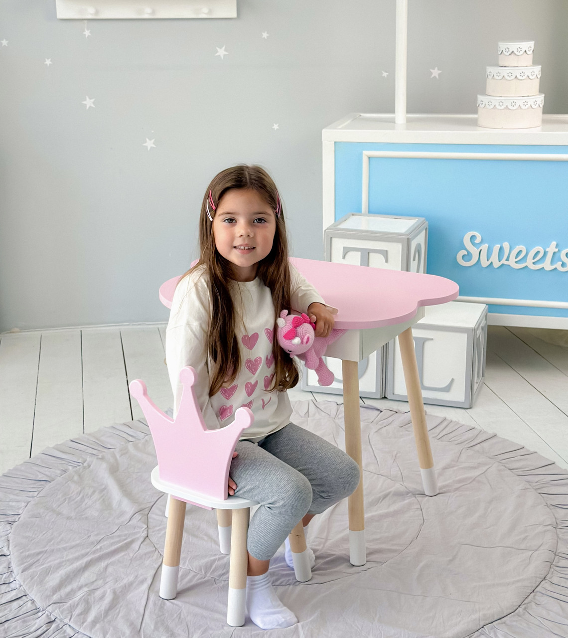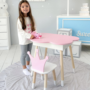 Новинка! Дитячий стіл рожевий хмарка з нішею і стільчик корона рожевий 93061