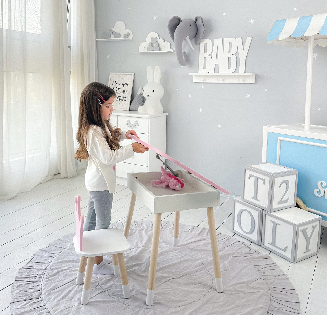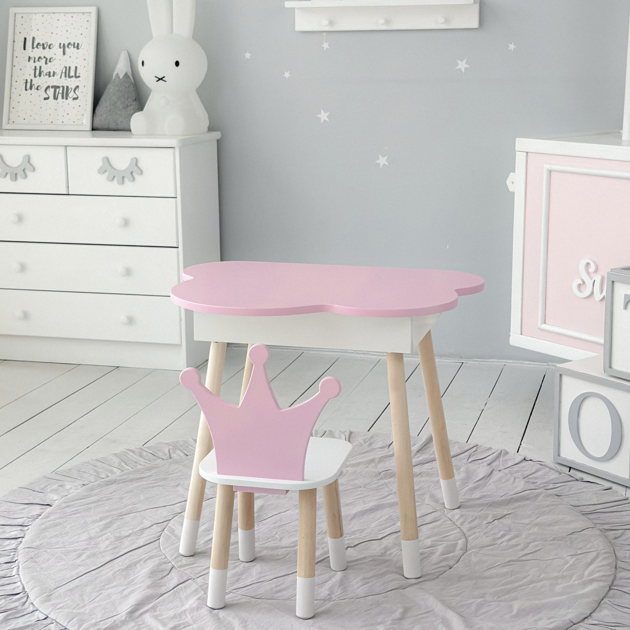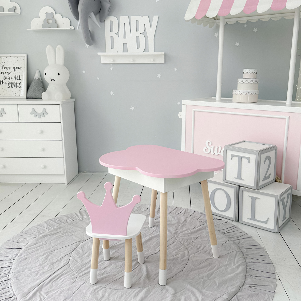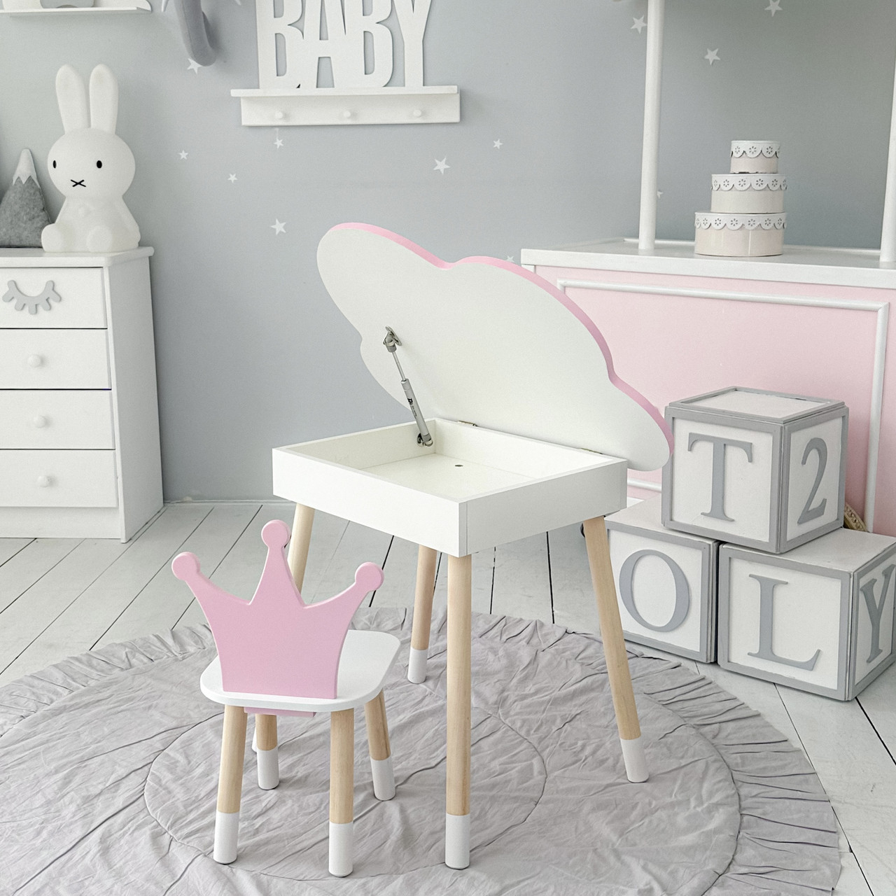 Новинка! Дитячий стіл рожевий хмарка з нішею і стільчик корона рожевий 93061