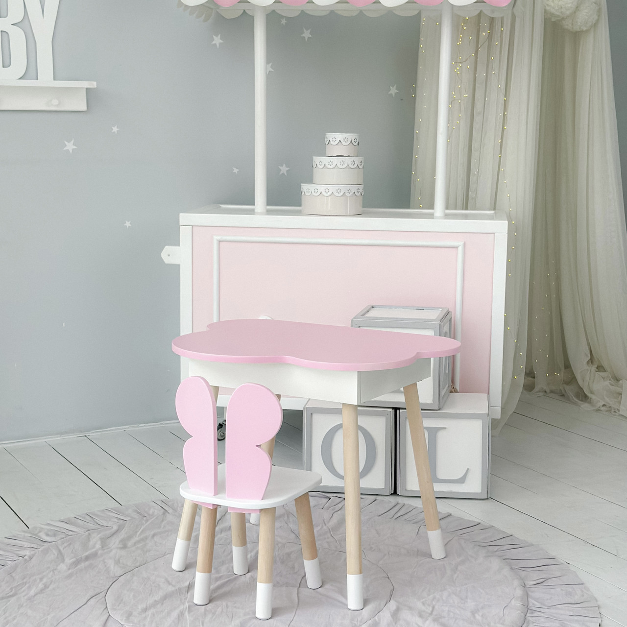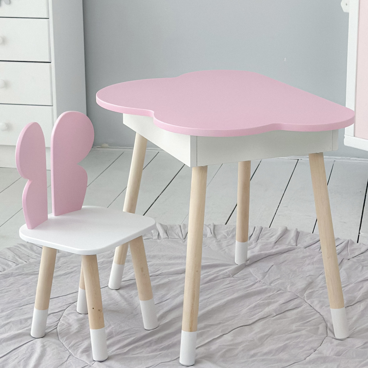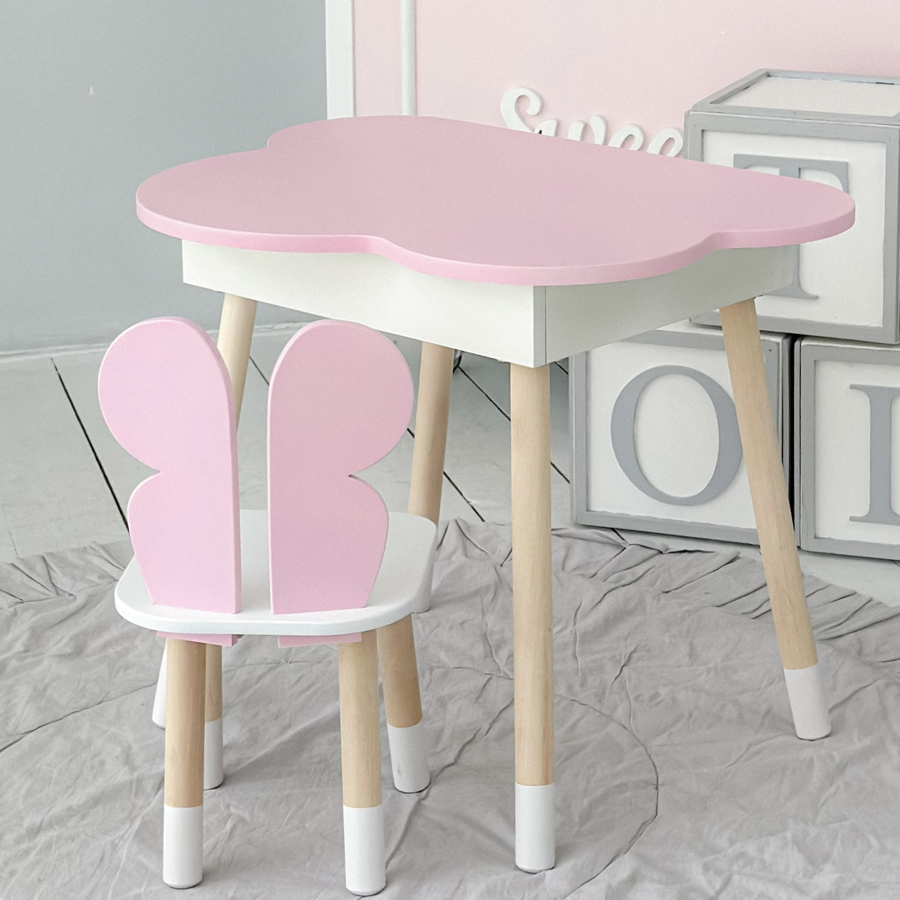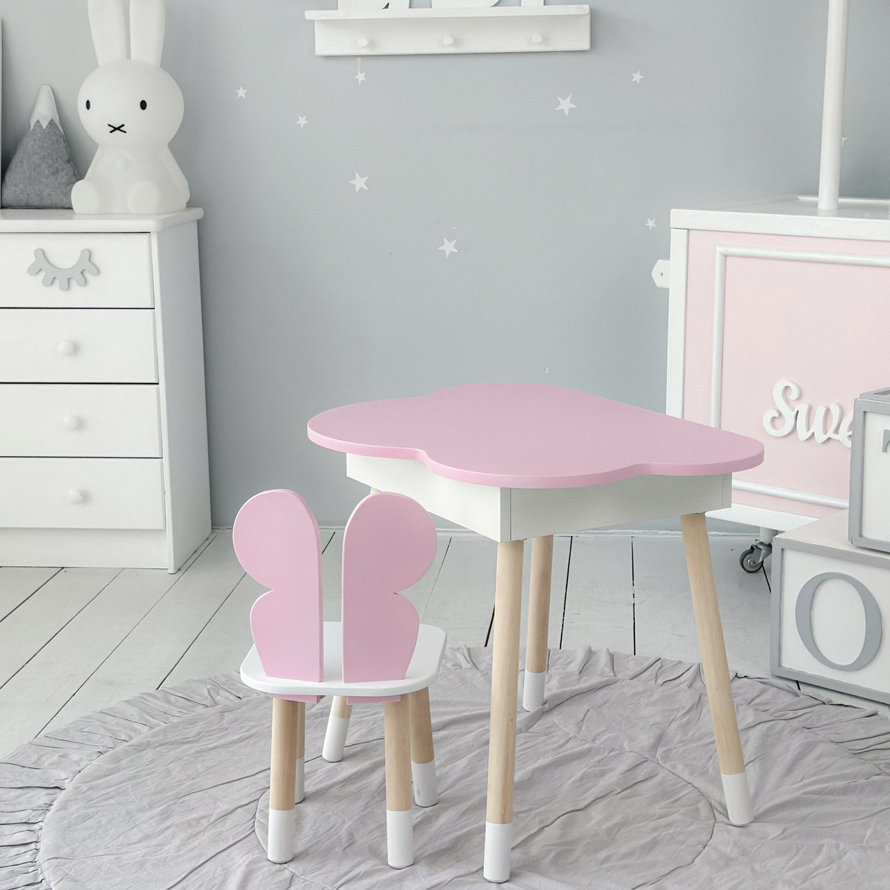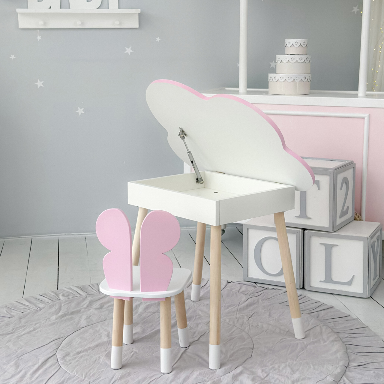 Новинка! Дитячий стіл рожевий тучка з нішею і стільчик метелик рожева 23412