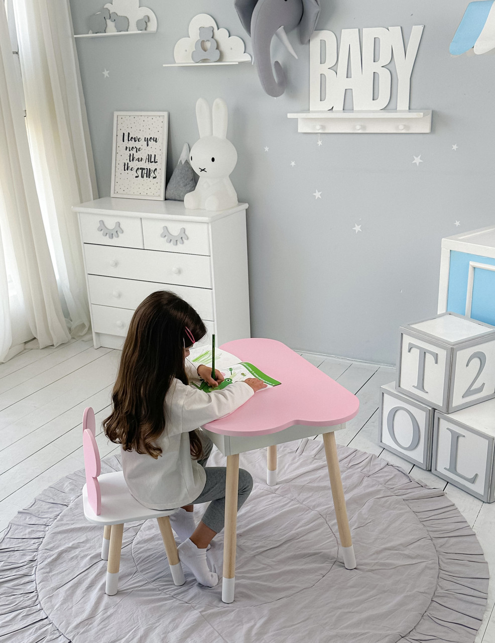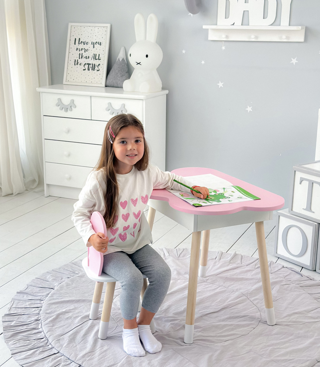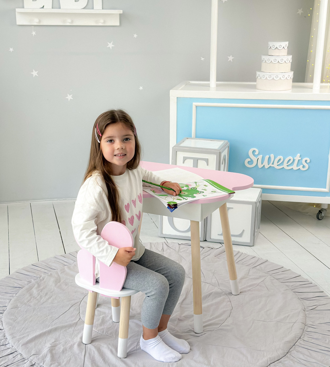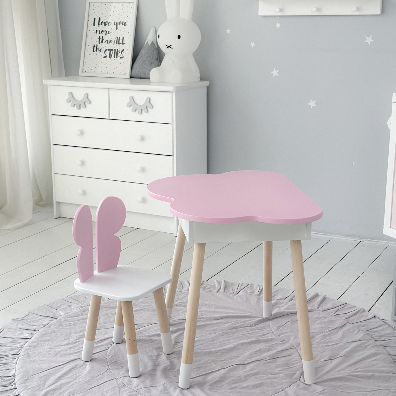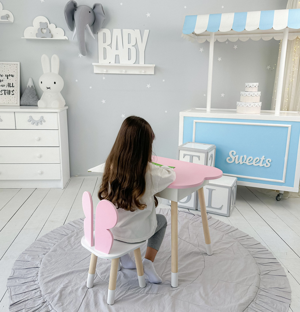 Новинка! Дитячий стіл рожевий тучка з нішею і стільчик метелик рожева 23412