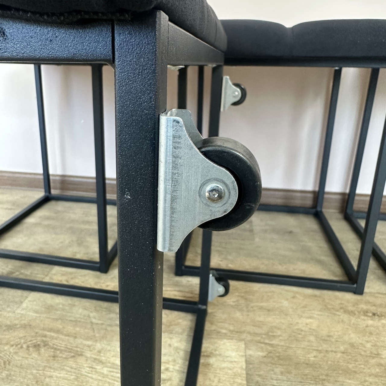 Сварной металлический каркас (ножки стульчиков) изготовлен из профильной стальной трубы сечением 15х15мм с толщиной стенки 1,5мм и покрыт порошковой краской.
